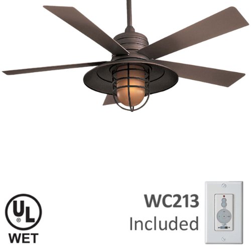 Includes: WC213 - Three Fan Speeds & Light Dimming Wall Mount.Includes: Five, Taupe Blades - (54" Span / 14 Blade Pitch).172mm x 20mm Spinner Motor - Lifetime Warranty / CFM = 5470, Watts Used = 60, CFM Per Watt = 91.(1) 100Q/F/JD - 100watt Mini Can Halogent Light in Acid Etched Glass (bulb(s) included).Downrods and Accessories are Available. The Minka-Aire Fan F582-ORB is a Rainman Ceiling Fan with the WC213 - Three Fan Speeds & Light Dimming Wall Mount in the Oil-Rubbed Bronze motor finish. Reflecting a marine theme, the RainMan fan can be the focal point of any indoor or outdoor environment. RainMan's excessive torque motor and 54" blade sweep sail blade configuration reachs comfy air circulation. This Ceiling Fan is from the Rainman WET Collection and that is UL Wet rated. The Rainman Includes 3.5" & 6" (3/4" Interior Diameter) Pole.. ... Read more Minka-Aire Fans F582-ORB 54" Rainman Tropical WET Outdoor Bronze Ceiling Fan w/ Light & Wall Ctrl